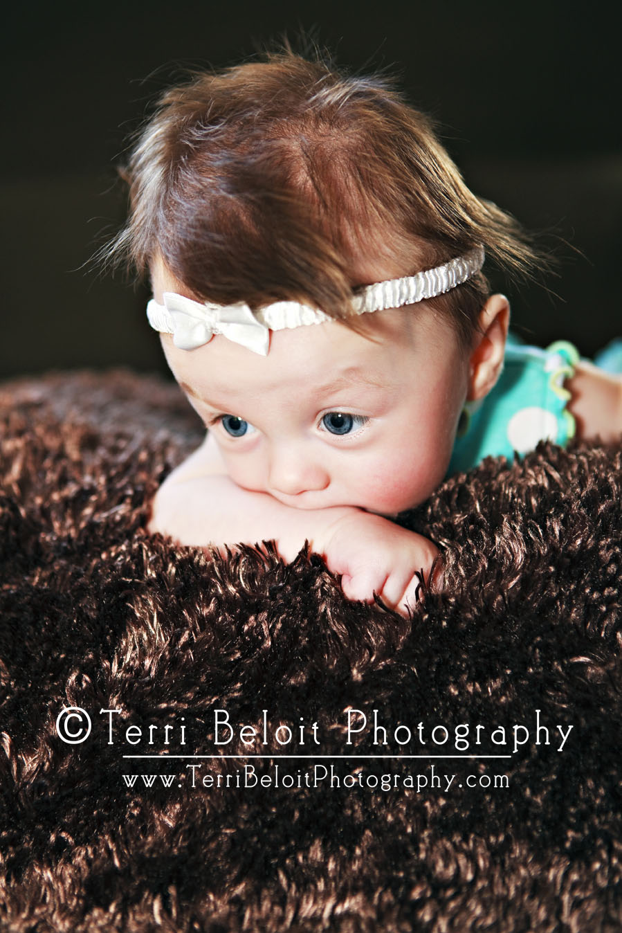 Friday afternoon I had the pleasure of visiting baby Brylee again (see newborn posting http://blog.terribeloitphotography.com/2010/01/beautiful-blessing.html) who is not quite four months old. Wow, it’s so exciting to see the changes…she’s doubled her weight and is as beautiful and precious as she was when I first met her. This day it was just Brylee and her mom…dad was working and her (four-legged) brother was outside…although he wasn’t very happy with that…he would have really liked to be a part of this session, I’m sure! It was so much fun to see what she was doing now and the smiles just light up her face…and when we got a really big smile, her dimples would show…with babies, it doesn’t get much better than that. I’ve been blessed with some little ones this week for sessions and I must say, it’s the BEST…nothing is better.