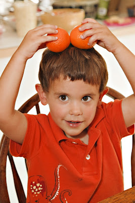 Big brother, Luke, show us his oranges and how he can put them on his head!