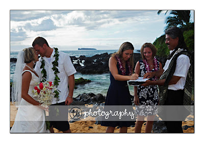 This past Tuesday, I (along with my wonderful assistant…my husband!) had the pleasure of photographing the wedding of Danielle Vesey and Garrett Wester…on the most beautiful island of Maui. How much better could it get? Other than the fact that it was a rather hot afternoon and slightly humid (I know you’re not feeling sorry for us!)…it was just perfect! It’s been over two years since Danielle chose Secret Beach/McKenna Beach as the location and it couldn’t have been a better choice! It’s a public, but secluded beach with some amazing rocks, wonderful fine sand and some great palm trees surrounding it…as I said…beautiful! There was a large group of family and friends that came to share in this special day with Danielle and Garrett…a testament to how much they are loved by one another and those who attended! Here are some photos from the day…