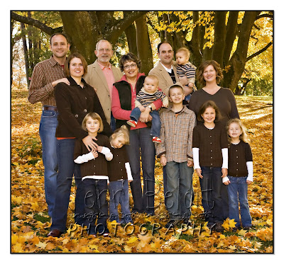 Well, after the babies yesterday morning, I had the joy of photographing the whole family today at Wright Park in Tacoma! What a GREAT group…so much fun, great looking and such nice people! My husband, Rick, joined me and was a huge help (as he calls his job…Sherpa) with hauling everything around the park…don’t know if I could have done it without him! The Hedman clan consisted of Neil and Normajean, their sons, Nick and Nathan and their wife’s, Sharon and April and kids…for a total of 6 adults and 7 children! Talk about active and energy…sure wish I had half of what they do. We couldn’t have asked for nicer weather…it was about 55 degrees, clear skies, GREAT fall colors and an occasional light breeze (to bring down some more leaves!)…it was perfect! Days and people like this is why I LOVE portrait photography!!!