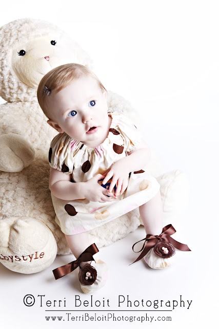 Little Rylee is four months old and I’ll tell you, she’s the CUTEST…and was great during her session. The little bloomers she is wearing are so stinkin’ cute and along with that hairbow or the hat (ADORABLE)…they fit her perfectly…I just love her eyes and sweet cheeks….what a doll!!!!